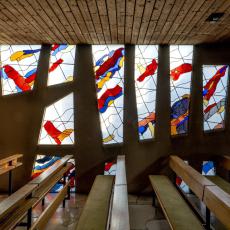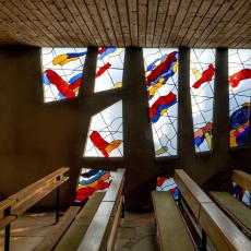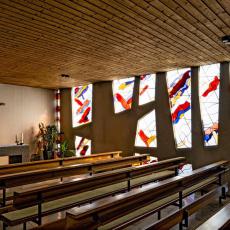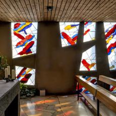 neue farbige Fenster in der Seitenkapelle. Gestaltet von Hans Kassuba |