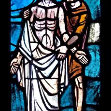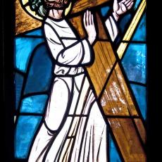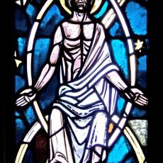 Abweichend von der "Norm" finden wir 18 Fenster, also 4 mehr, als ansonsten: zwei zu Beginn: Abendmahl & Gethsemane, zwei nach der Grablegung: Auferstehung & Der Auferstandene in der Mandorla.