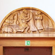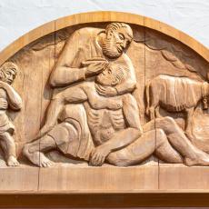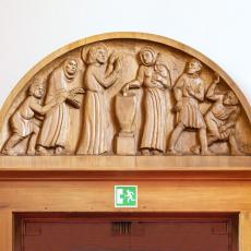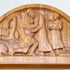 Ulrich Henn (1925 - 2014): Holz-Kruzifix in der Kapelle, 6 Biblische Gestalten (Pfeilerfiguren), Glockenzier der Großen Glocke von 1956