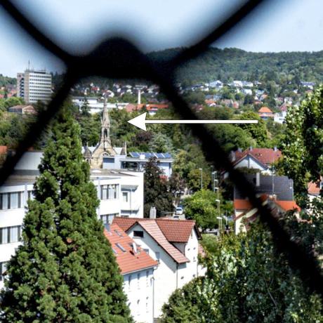 9.32: Ausschnitt (Vergrößerung) aus 9.31 mit dem Kirchturm der Katharinenkirche, "Mutterkirche" der Christuskirche