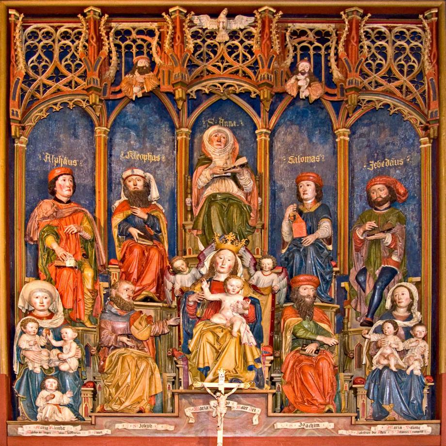 Dreh- und Angelpunkt dieser Gruppe ist Anna. Um sie herum werden die Ehemänner, die Töchter und Schwiegersöhne und dann die Enkel gezeigt: Anna, Joachim, Cleophas, Salomas, Maria, Josef, Maria Cleophas, Alphäus, Maria Salome, Zebedäus, Simon Zelotes, Judas Thaddäus, Jakobus der Jüngere, Josef und die Zebedäussöhne Jakobus der Ältere und Johannes. So kommt der engste Familienkreis auf 17 Personen.