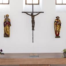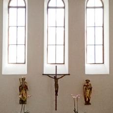 Das bronzene Altarkreuz und geschmiedete Lesepult wurden 1966 von Hans Loretan aus Brig gefertigt. Der geschmiedete Tabernakel aus dem Jahr 1969 stammt vom selben Künstler.