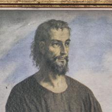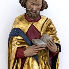 mit Bibel (Buch), einer der 4 Evangelisten. Sein Evangelistensymbol ist der Engel (hier nicht zu sehen). Verfasser des 1. Evangeliums der Bibel (Neues Testament). Von Beruf war er Zöllner.