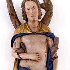 Märtyrerin Rom Ende des 3.Jh., hält im Arm einen Pfeil, mit dem er beschossen wurde. Halbnackt am Baumstamm angebunden. Von Irene gesund gepflegt, später mit Keulen erschlagen und in die Cloaca Maxima von Rom geworfen. Schutzpatron gegen die Pest, gegen Ketzerei und Religionsfeinde, Beschützer des Soldatenstandes und der Schützen.