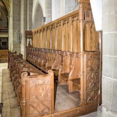 Die heutige reformierte Pfarrkirche Saint-Martin im Zentrum der Alt- stadt ist der einzige erhaltene Teil des ehemaligen Benediktiner- priorats. Die erste romanische Prioratskirche wurde im 11. Jahrhundert erbaut. In den nachfolgenden Jahrhunderten wurden aber zahlreichen Um- und Ausbauten vorgenommen: der Polygonalchor stammt von 1260, das Kirchenschiff wurde nach einem Brand 1344 umgestaltet, die nördlichen Seitenkapellen im 14. und 15. Jahrhundert angebaut. Nach der Reformation gab es weitere Veränderungen. Der heutige Turm wurde 1544 errichtet und 1569–78 das reich skulptierte Renaissance- portal gestaltet. Der Innenraum ist mit manieristischer Dekorations- malerei aus dem 16. Jahrhundert ausgestattet.