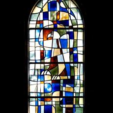 Die mittleren drei der insgesamt fünf Chorfenster halten bedeutungsvolle Ereignisse aus dem Leben Christi fest: da ist links das blaue Weihnachtsfenster mit der Lilibenblüte als Ausdruck der Reinheit, und mit dem Bethlehemstern. Das mittlere Fenster, vorwiegend in Rot gehalten, erzählt von Ostern und vom Wirken des Heiligen Geistes. Das Fenster rechts mit Dornenkrone und krähendem Hahn soll an Leiden und Sterben des Herrn erinnern. Das Abendmahlsfenster mit Brot und Kelch und das Fenster der Offenbarung beschließen diese eindrückliche Predigt aus Farben und Licht.