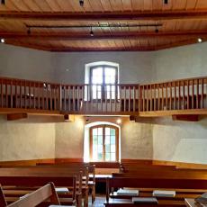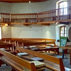 Die Orgel, die nach fünfzig Jahren Dienst erschöpft war und zu schwer-fällig war, um in der renovierten Kapelle zu bleiben, wurde 1972 dem Schweizerischen Orgelmuseum übergeben. Eine neue Orgel, die von der Orgelmanufaktur Lausanne nach Mass gebaut wurde, wurde auf der Galerie platziert und beherrscht den Haupteingang. Im Laufe der gleichen Restaurierung wird das kleine Fenster (14. Jahrhundert) der Südfassade mit einem von Jean Prahins entworfenen Glasfenster, der «Taube des Heiligen Geistes», geschmückt.
