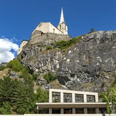 Raron, ein kleines Dorf im Oberwallis, nimmt eine Sonderstellung ein, da der Ort über zwei Pfarrkirchen verfügt: eine aus dem 16., eine aus dem 20. Jahrhundert. Die ältere (Anfang 16. Jh) "auf der Burg" wird hier ausführlich vorgestellt, die jüngere Kirche - direkt unter der Burgkirche - ist ganz in den Fels gesprengt worden und eine architektonische Rarität.