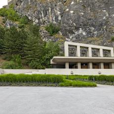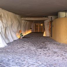 1973 Innenausbau des Kirchenraums im Felsen und des Kirchenvor-baus im Freien. Fertigstellung Felsenverkleidungsarbeiten Hauptzu-gang.