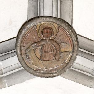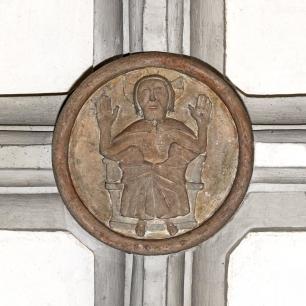 Innen (4) · südl. Seitenschiff vorn: Schlußsteine · Christus und die vier Evangelisten(symbole)