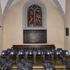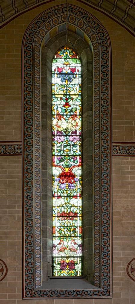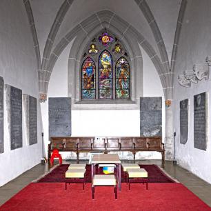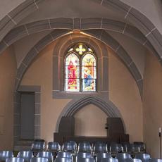 Zahlreiche Fotos auf WikiCommons. Details zur Orgel und zu den Fenstern siehe unten.