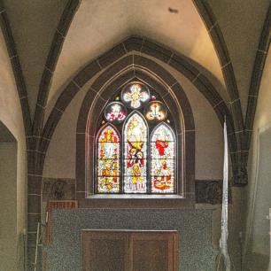 Der im eleganten gotischen Stil erbaute Chor bildet den ältesten Teil der heutigen Kirche. Er wurde Ende des 19. Jahrhunderts renoviert, wobei man die ursprünglich aus Sandsteinquadern gestaltete Fassade mit hartem Gestein originaltreu nachbildete. Zur selben Zeit entstanden neben dem Chor die neogotische Pfeilerhalle und die Sakristei.