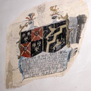 Über dem Triumphbogen verweist das mit den Namen von Landvögten versehene Berner Wappen auf den alten Patronatsherrn des Chores; nach der Reformation hatte Bern die Nachfolge des Kapitels an der Kathedrale von Lausanne angetreten. Ein erstes Wappen trägt die Jahreszahl 1592; 1725 wurde es mit einem zweiten, imposanteren überdeckt.