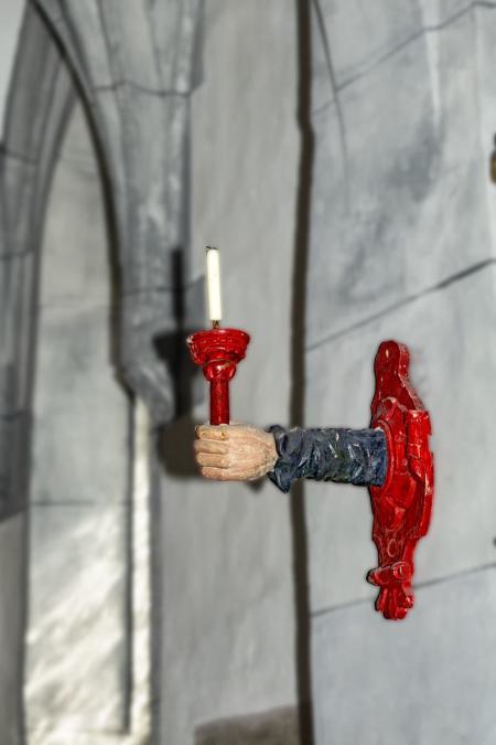 Heute wieder in Sogn Glieci in der Nische hoch über dem Schiff auf der linken Seite aufgestellt - hinter Panzerglas.