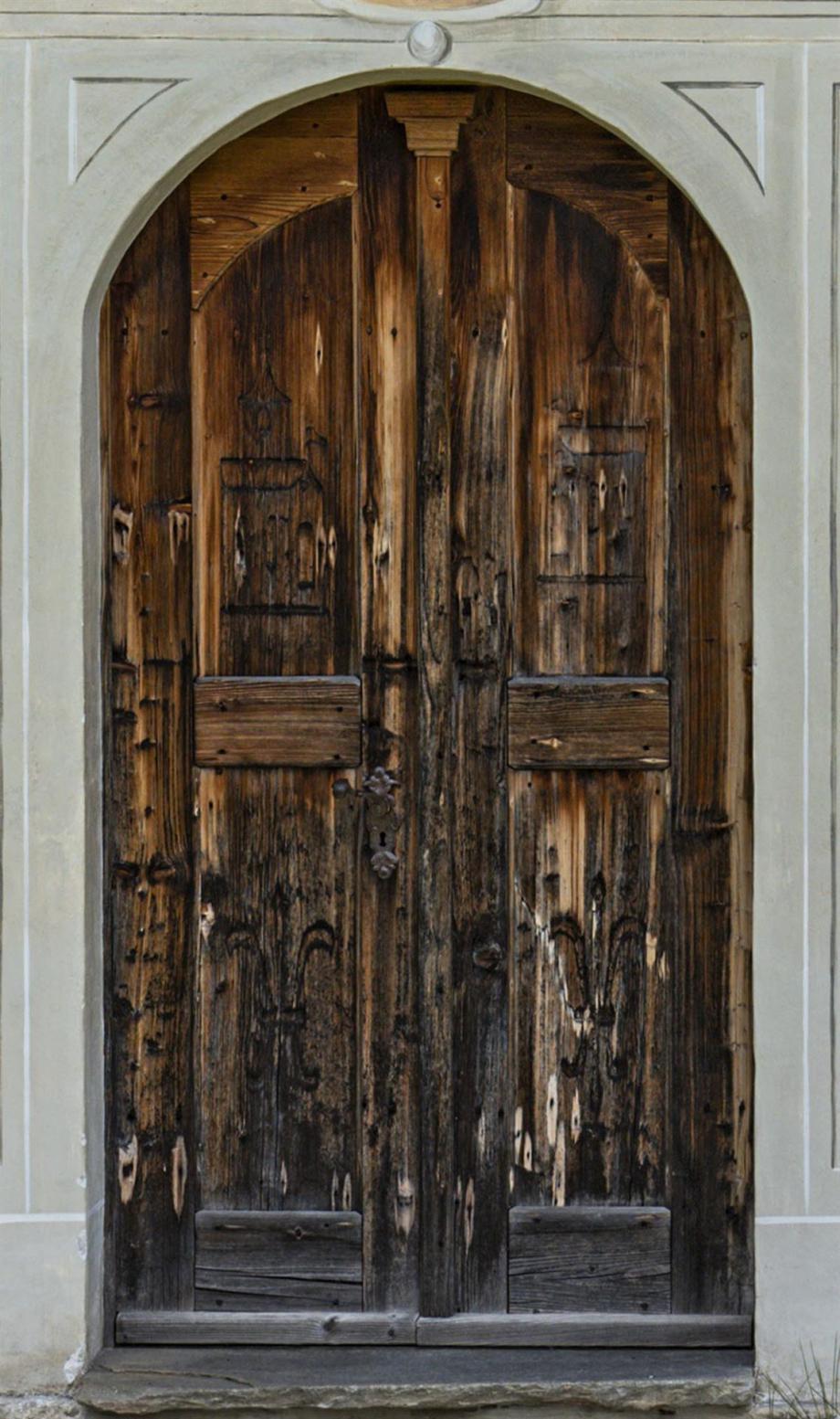 Die 4 Füllungen sind mit Flachschnitzerei geschmückt: oben 2 Kirchen, unten 2 x Lilie