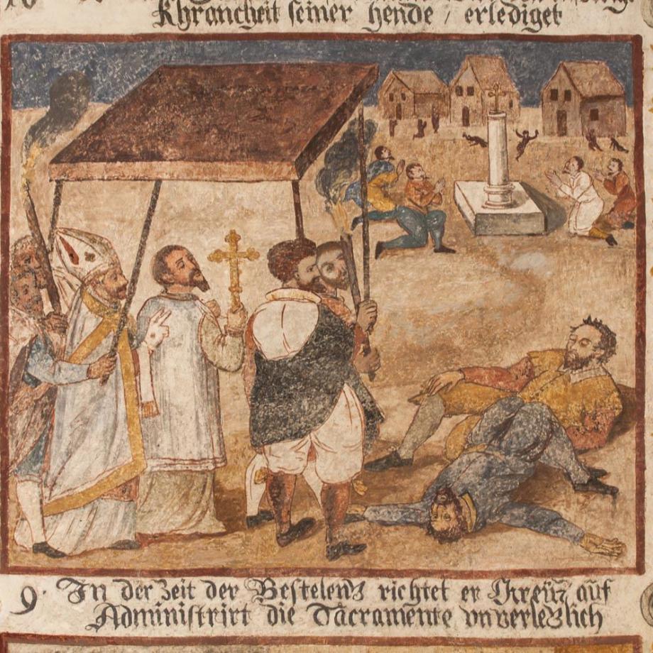 8 · Bilderwand "Das Leben und Wirken des S. Carolo Borromeo"