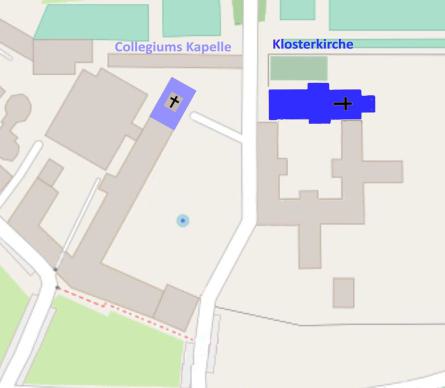 - der Bernhardskapelle ("Collegiumskapelle"), im 2. Stock im Westtrakt gegenüber der Kirche gelegen, der Muttergottes geweiht mit zahllosen Bildwerken, Fenstern - opulenter Ausstattung. Das absolute Gegenstück zur Klosterkirche.