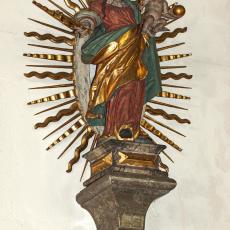 Das andere spätgotische Holzbildwerk, der Hl. Jakobus, stammt mit größter Wahrscheinlichkeit vom gleichen unbekannten Meister wie die Madonna; beide dürften zu einem gotischen Altar gehört haben. Die Heiligenstatue ist ohne plastische Veränderung geblieben; bei der Restaurierung konnte die Originalfassung freigelegt und konserviert werden.
