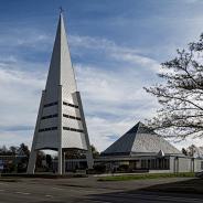 wieder mit irokeltischen Motiven, steht links im Chorraum und zeigt an, dass der gegenwärtige Herr im Sakrament unter uns ist:
