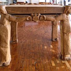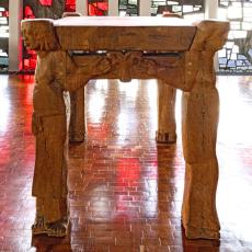 im heutigen Meditations-, Werktagsgottesdienst-, und Kinderkirchenraum zeigt die Tischträger Adam und Eva, Maria und Christus.
