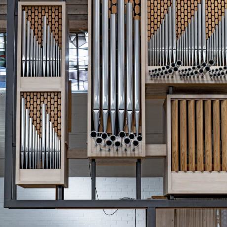 Spielhilfen: 4 freie mechanische Kombinationen, Crescendotritt, Schwelltritt, Tuttiknopf, Zungen ab