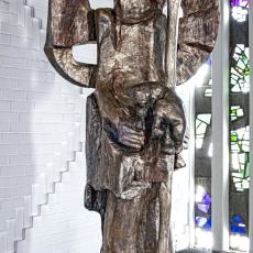 Wendelin Matt (*1934) wurde gewählt und beauftragt, mit den Jahren (von 1976 bis 1992) wesentliche biblische Aussagen des Heilsgeschehens Gottes mit den Menschen ins Bild, in die Gestalt zu bringen, ebenso liturgische und sakrale Geräte und Gefäße zu schaffen – als Bildhauer mit seiner archaischen, verdichtenden und starken Handschrift (er arbeitet am liebsten in altem, harten Holz, in Stein und in Bronce). Seine Hauptwerke sind zweifellos die Columbansfigur, der Marienfries und die „Sieben Kniefälle" als Kreuzweg, dann der Tabernakel als Bundeslade dargestellt.