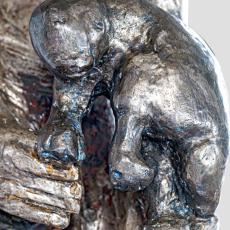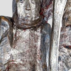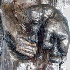(3) Die Geburt aus Maria, der Jungfrau und Mutter, die zum Thron für Gottes Sohn geworden ist. Christus ist die Mitte der Skulptur. Marias Dienst gilt ihm. Der große Nimbus um Maria, fast wie der Goldgrund einer Ikone, lässt deutlich werden, welches Leben in Maria und in jedem Menschen wirksam werden kann, wenn wir uns unter die Weisung Gottes geben.