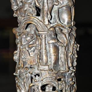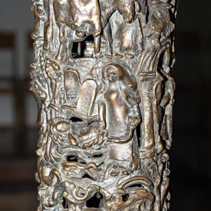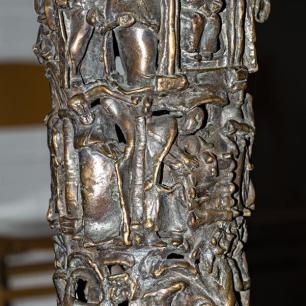 ist ein aus der Erde wachsender Baum, er ist der Stammbaum der Schöpfungsgeschichte (der untere gestaltete Figurenring), der Urgeschichte (mittlerer Ring) und der neutestamentlichen Heilsgeschichte (oberer Ring). Im unteren Ring erkennen wir Szenen des Weltenanfangs, die Erschaffung des Menschen. Im mittleren Ring den Bundesschluss Jahwes mit seinem erwählten Volk (als seine Repräsentanten: Abraham, Isaak,