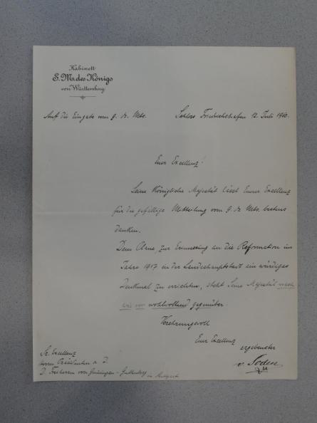 Quelle: in Schönschrift handgeschriebenes Schreiben, 1 S.