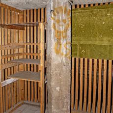 Für die Nachkriegsnutzung (bis heute) dann durch Lattenwände unterteilt.
