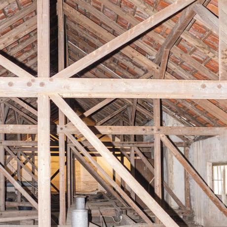 12 · Der Anfang 1939 aufgesetzte Dachstuhl