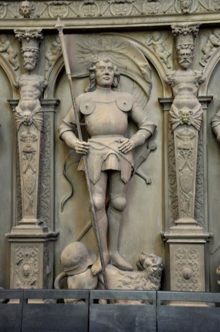 Stuttgart, Chor der Stiftskirche, Grafenstandbilder von Sem Schlör (ab 1576 entstanden zum Ersatz der ursprünglichen Epitaphe der in der Stiftskirche beigesetzten Grafen von Württemberg) Figur 10: Ulrich V. der Vielgeilebte († 1480)