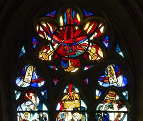 Farbfenster im Schiff der Kirche (Otto Habel). |