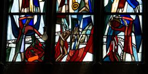 Durch Luftangriff werden die Chorfenster der Kirche stark beschädigt. |