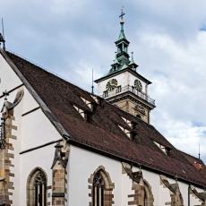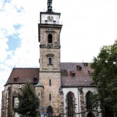 "Die spätgotische Stadtkirche von Bad Cannstatt ist ein herausragendes Werk des Stuttgarter Baumeisters Aberiin Jörg (ca. 1425 bis 1490). Als Architekt des Grafen Ulrich V. von Württemberg war Jörg an 16 Kirchenbauten des Landes maßgeblich beteiligt, aber nur zwei stammen in ihrer Gesamtplanung von ihm: die Cannstatter Stadtkirche und die Stuttgarter Hospitalkirche.