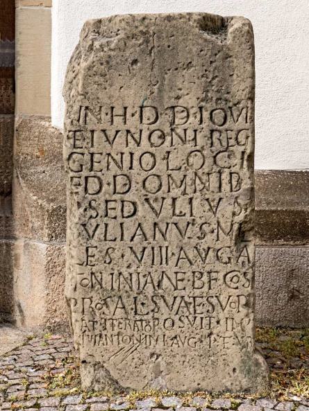 Publius Sedulius Iulianus war Kommandant der römischen Straßenstation bei der heutigen Uffkirche. Nach Beendigung seiner Dienstzeit stellte er aus Dank für deren guten Verlauf diesen Weihealtar für die Götter Jupiter, Juno, den Schutzgeist des Ortes und alle anderen Götter und Göttinnen auf. Der Altar wurde im 16. Jh. bei der Uffkirche gefunden. Die Inschrift ist nicht komplett erhalten, da der Altar zuvor zeitweise als Baustein verwendet wurde.