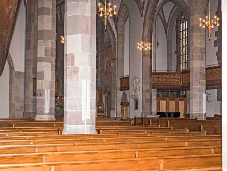 Der Chor mit seinem Sternengewölbe wurde von 1465 bis 1471 errichtet und befindet sich in originalem Zustand. In den folgenden Jahren wurde das Langhaus als Hallenbau mit drei gleich hohen Schiffen erbaut. Dieser einheitlich konzipierte Raum war auf die Bedürfnisse des städtischen Bürgertums im ausgehenden Mittelalter zugeschnitten, das eine eigene Predigtkirche beanspruchte.