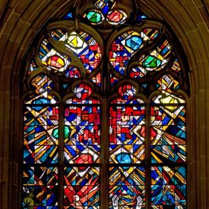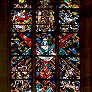 Die drei östlichen Chorfenster der Cannstatter Stadtkirche wurden 1963 von Wolf-Dieter Kohler mit Glasmalereien ausgestaltet.
