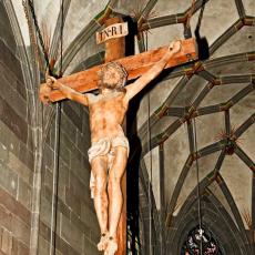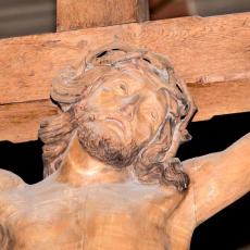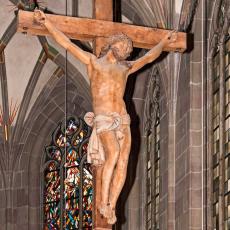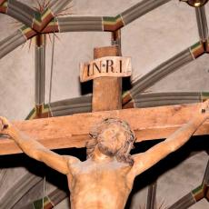 K Der Triumphbogen trennt den Chor vom Schiff. Neugotischer Kruzifix von 1859