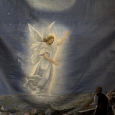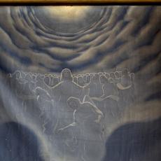 Oben in der Mitte ist er bestimmt von einem wolkenumrahmten Strahlenkranz und einem darin in seiner geometrischen Anordnung im gleichschenkligen Dreieck wachenden Auge Gottes. Es symbolisiert die Göttliche Dreieinigkeit und die Allgegenwart Gottes.