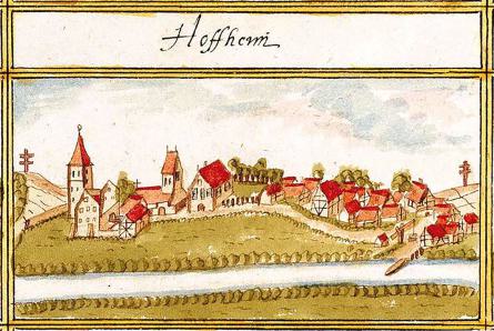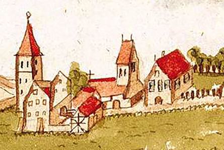 Die Zeichnung aus dem Forstlagerbuch von Andreas Kieser zeigt Hofen vor 1687 und ist somit die älteste bekannte Ansicht von der Kirche und Burg. Ob das von Kieser gezeichnete Kirchengebäude identisch ist mit der 1353 im Esslinger Urkundenbuch erwähnten Kapelle kann nicht beatwortet werden. Quelle: Landesarchiv Baden-Württemberg - Hauptstaatsarchiv Stuttgart. Permalink
