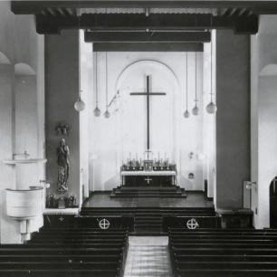 Am Sonntag, 9. November 1969, hatten wir die letzte hl. Messe in unserer Franziskuskirche gefeiert. Dann begann die Renovation mit all ihren Mühen. Wir mußten in den Gemeindesaal umziehen und dort alle Gottesdienste halten. Sicher sind alle von Herzen froh, wenn nun diese Zeit des Notbehelfs zu Ende geht. Der knarrende Fußboden, die schlechte Akustik im Saal mit seiner schlechten Beleuchtung und andere unliebsame Begleiterscheinungen ließen uns spüren, was wir an einem schönen Gotteshaus haben. Wir hoffen sehr, daß unsere liebe Franziskuskirche nach der Neugestaltung des Innenraums der ganzen Gemeinde gefallen wird.