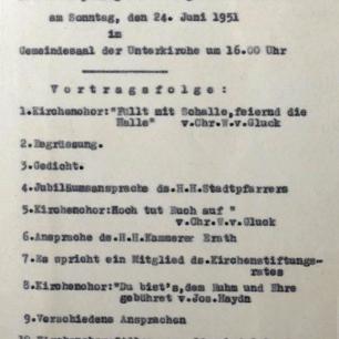 Eine Weiterführung der Chronik erübrigt sieh, da über die Vorgänge in der Gemeinde in den Kirchlichen Mitteilungen regelmäßig berichtet wird.