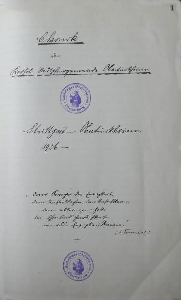 Errichtung der Stadtpfarrei „St. Franziskus". Zu ihr gehören etwa 900 Katholiken der Stadtteile Obertürkheim, Hedelfingen und Uhlbach. Vikar Josef Uhlmann wird zum Stadtpfarrverweser ernannt, 1931 zum ersten Stadtpfarrer. |