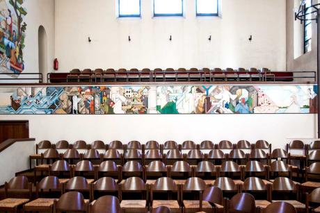 Am Sonntag, 28. Februar 2016 fand auf Initiative des Sohnes Martin Wiedmann und des Pfarrers Dieter Kümmel ein Gedenkgottesdienst statt, in welchem Pfarrer Kümmel über die Bilder Wiedmanns predigte, insbesondere das Bild der rechten Emporenseite "Das große Festmahl" deutete. Dankenswerterweise hat er seinen Predigttext "Versöhnte Welt" zur Verfügung gestellt - hier zum Download.