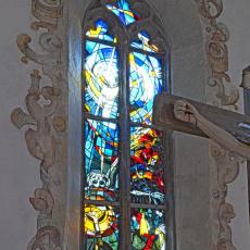 Die drei Chorfenster wurden von der Künstlerin Gudrun Müsse Florin aus Göggingen (Ostalbkeis) geschaffen. Nachfolgend die Beschreibung der Chorfenster im Originaltext der Künstlerin.
