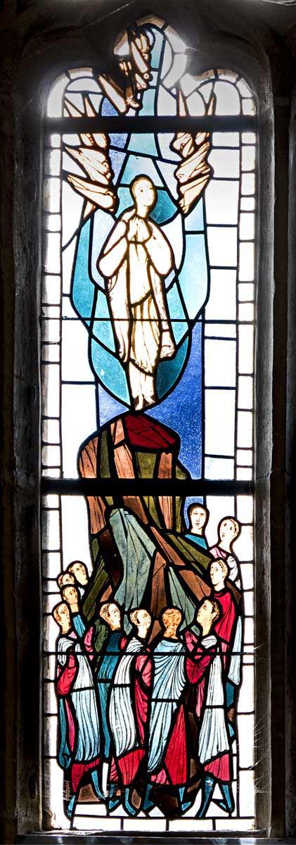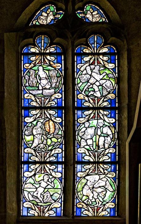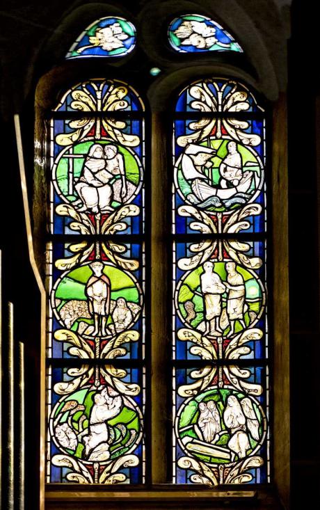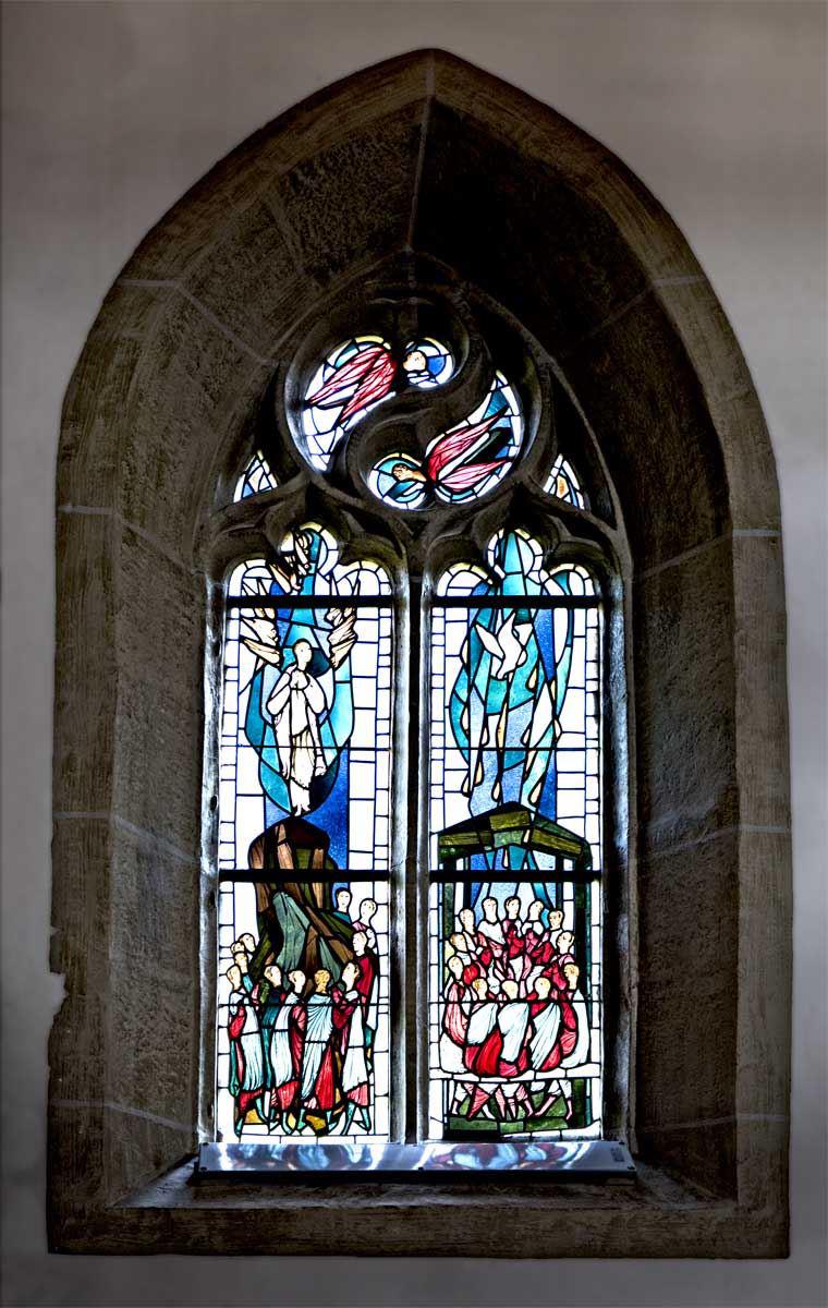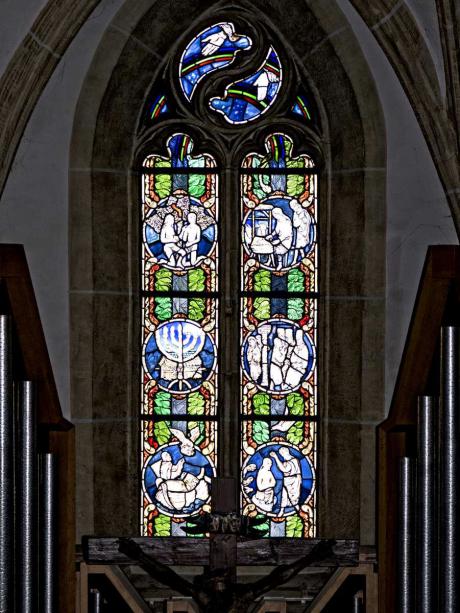 Die neuen Fenster im Chor der Kirche wollen in besonderer Weise Altes und Neues Testament in bildlichen Darstellungen dem Betrachter nahebringen.