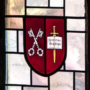 Das Wappen der Kirche von St. Peter und Paul in Mansfield zeigt den Schlüssel als Symbol für Petrus. Für Paulus das Geistesschwert. (Die lateinische Inschrift gladius spiritus heißt Schwert des Geistes). Aufgebracht ist dieses Wappen in der anglikanischen Kirche St. Peter und Paul, Mansfield.