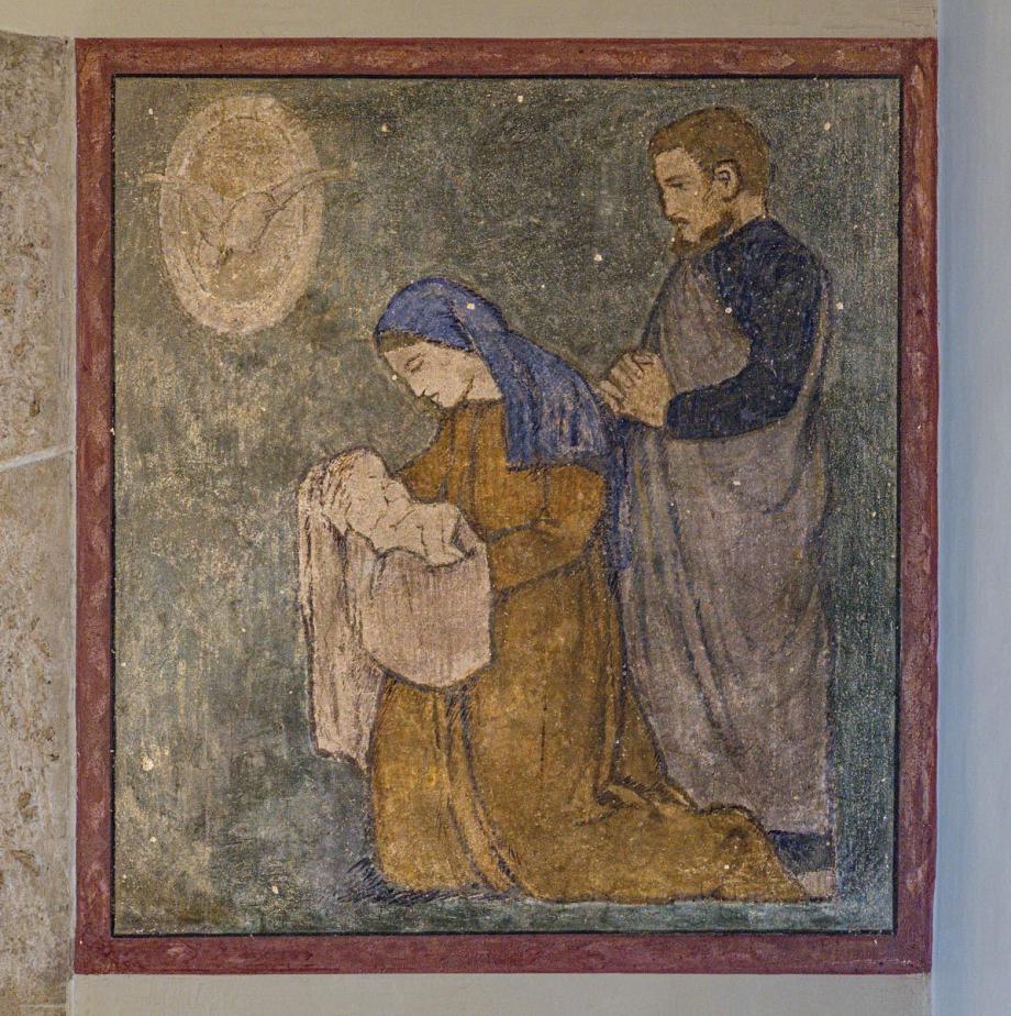 1. Reihe Die Geburt Jesu (Lukas 2) - Daneben die Taufe Jesu im Jordan durch Johannes (Matth. 3, 9).