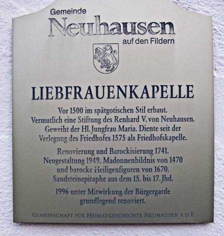 Gestiftet wurde die Kapelle von Renhard V. von Neuhausen.